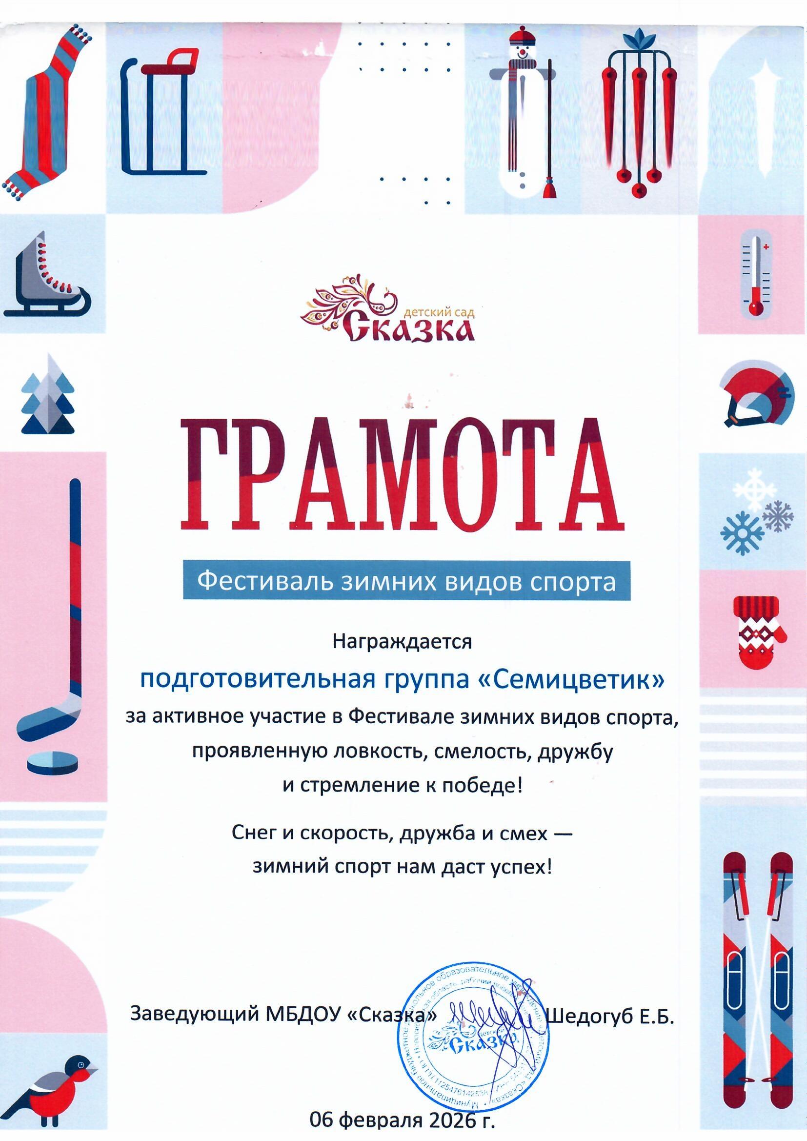 Диплом победителя детского оздоровительного конкурса Мы против гриппа и простуды. МБДОУ Сказка 2020
