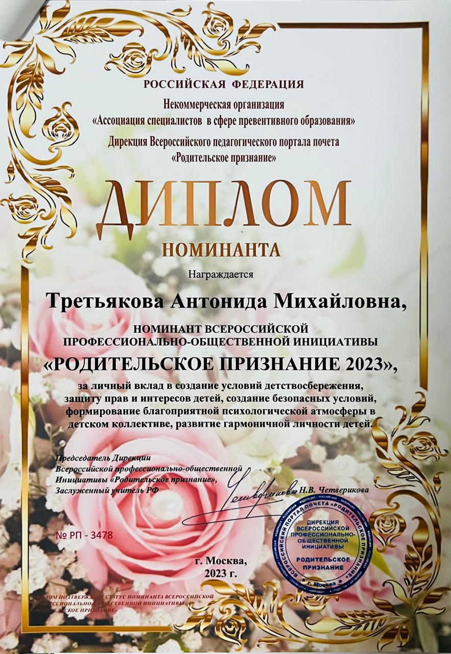 Почётная грамота от главы территориальной администрации В. П. Саблина. 2004 год.